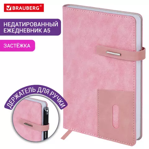 Ежедневник недатированный А5 138х213 мм BRAUBERG "Imperial" под кожу, 160 л., розовый, 111859