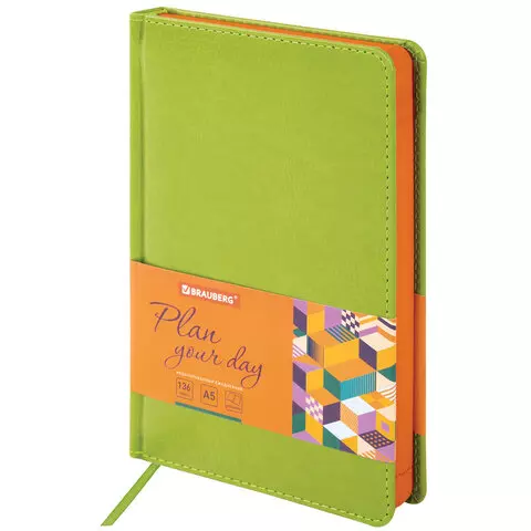 Ежедневник недатированный А5 138х213 мм BRAUBERG "Rainbow" под кожу, 136 л., зеленый, 111669