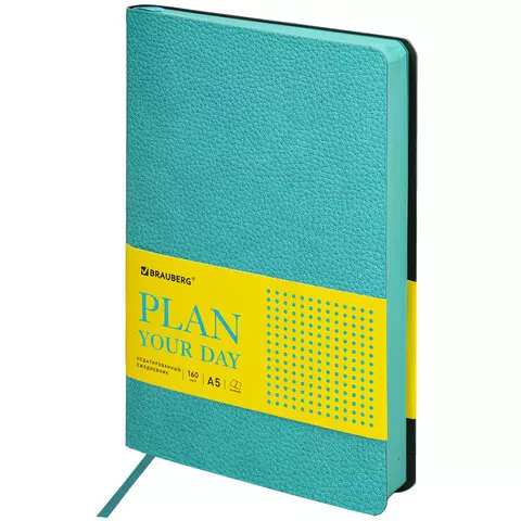 Ежедневник недатированный А5 (138х213 мм) BRAUBERG "Stylish", кожзам, гибкий, 160 л., бирюзовый, 111862
