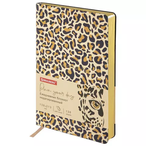 Ежедневник недатированный А5 (138х213 мм), BRAUBERG VISTA, под кожу, гибкий, 136 л., "Leopard", 112038