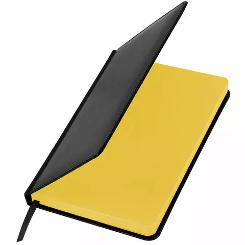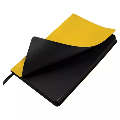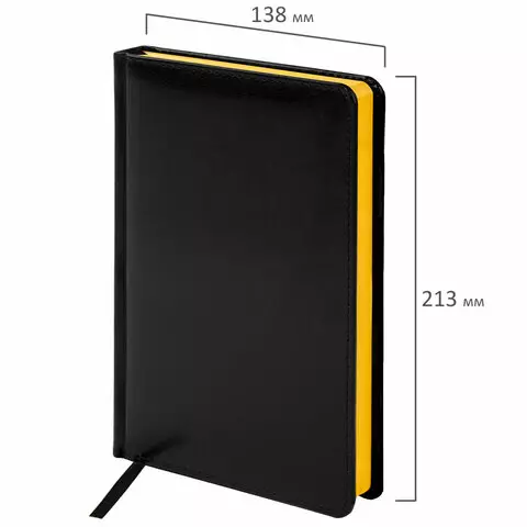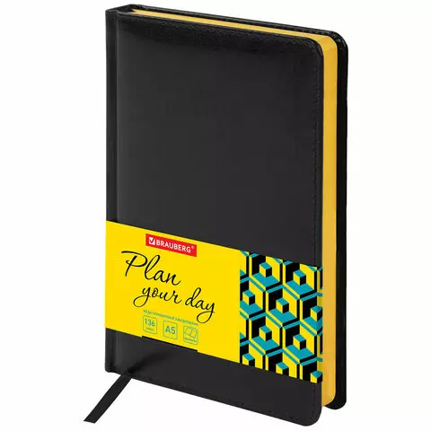 Ежедневник недатированный А5 (138x213 мм) BRAUBERG "Rainbow", под кожу, 136 л., черный/желтый, 113497