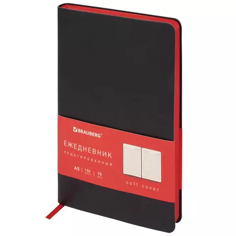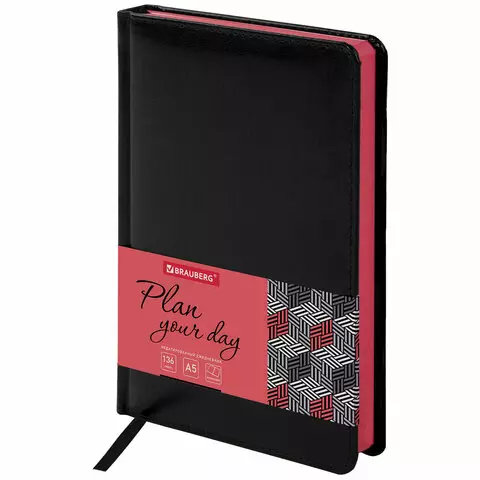 Ежедневник недатированный А5 (138x213 мм) BRAUBERG "Rainbow", под кожу, 136 л., черный/красный, 113498