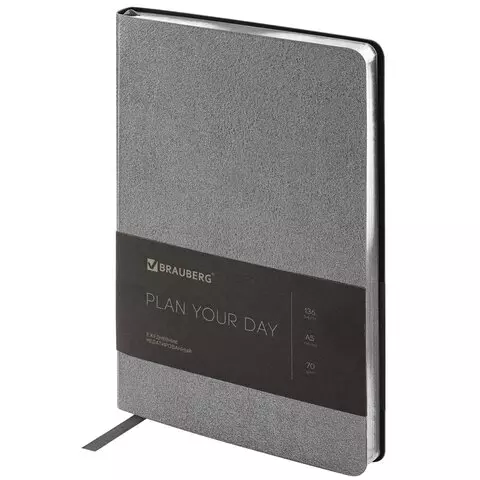 Ежедневник недатированный А5 145х213мм BRAUBERG "Vogue", под кожу, магнитный клапан, 160л, серый, 116224