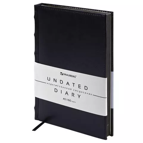 Ежедневник недатированный А5 138х213 мм BRAUBERG "Black Jack" под кожу, 160 л., черный, 123844