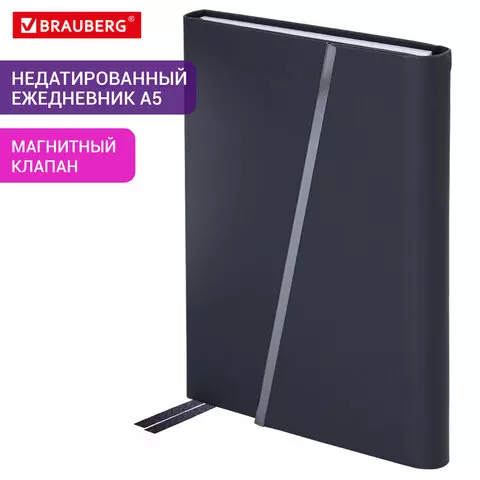 Ежедневник недатированный А5 145х213мм BRAUBERG "Vogue", под кожу, магнитный клапан, 160л, черный, 116223