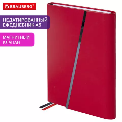 Ежедневник недатированный А5 145х213мм BRAUBERG "Vogue", под кожу, магнитный клапан, 160л, красный, 116225