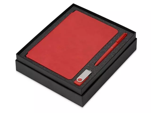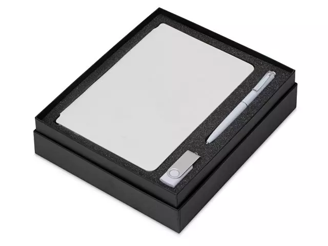 Подарочный набор «Notepeno» - это универсальный бизнес набор в современном стиле. С флеш-картой «Квебек» разъемом USB 2.0 все документы, презентации и договора будут под рукой. Блокнот «Notepeno» представлен в универсальном формате А5, отлично подойдет для любого мероприятия. Шариковая ручка «Plane» с фигурным корпусом soft-touch, который делает письмо невероятно комфортным. Набор упакован в дизайнерскую подарочную коробку из переплетного картона кашированного дизайнерской бумагой эфалин с ложементом из акустического поролона. Доступен в нескольких цветах.