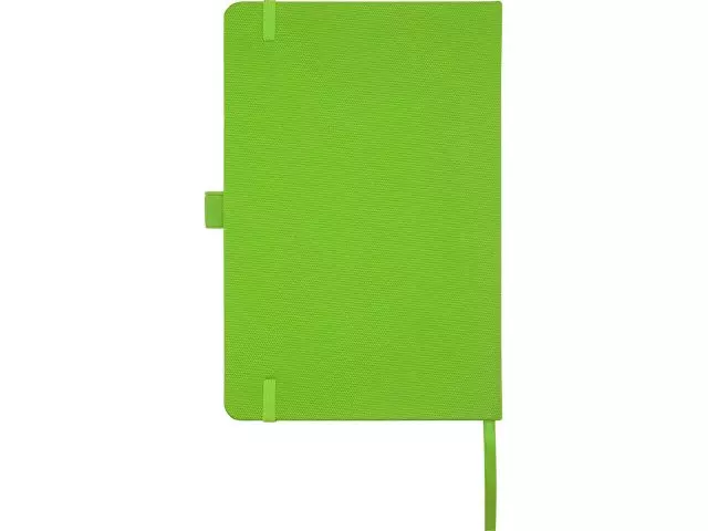 Блокнот формата А5 с обложкой из переработанного ПЭТ. Содержит 80 листов в линию плотностью 70 г/м², изготовленных из переработанной бумаги, с петлей для ручки и лентой-закладкой. Может быть дополнен шариковой ручкой Honua 107757 из переработанного ПЭТ. Переработанный PET пластик.