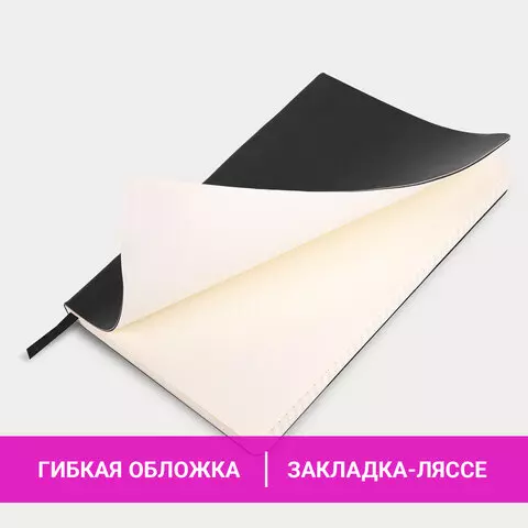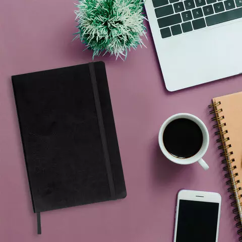 Блокнот в клетку с резинкой А5 (148x218 мм), 80 л., под кожу черный BRAUBERG "Metropolis Ultra", 111021