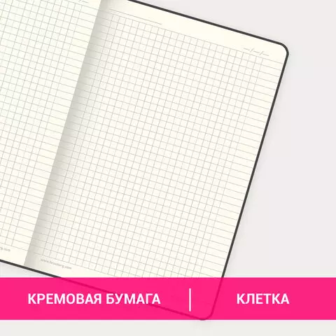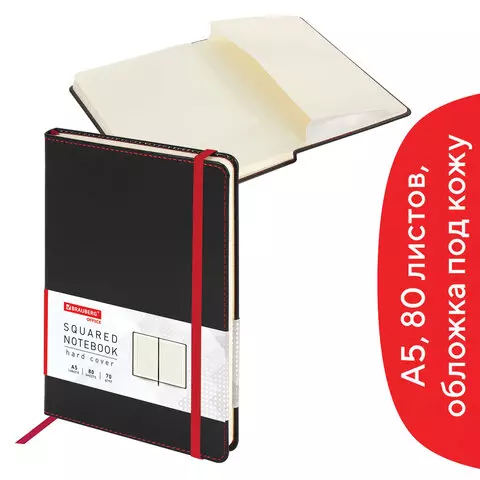 Твердая обложка стилизована под кожу черного цвета. Имеет закругленные уголки. Подходит для горячего тиснения. 80 листов позволят зафиксировать большой объем информации. Линовка блока в клетку (5х5 мм) дает возможность аккуратно заполнить цифровые значения, а также нанести чертежные зарисовки. Внутренний блок выполнен из офсета тонированного цвета плотностью 70 г/м2 и крепится к обложке с помощью книжного переплета. На внутренней стороне задней обложки есть декоративный конверт для разных мелочей в виде визиток, напоминалок и т. д. Снабжен резинкой-фиксатором, благодаря чему блокнот не откроется в сумочке или портфеле и листы не помнутся. Резинка-фиксатор и прострочка по периметру блокнота окрашены на контрасте цвета обложки, что придает блокноту изысканность и шарм. Дополнением является закладка-ляссе, с помощью которой при необходимости можно быстро открыть нужную страницу. Формат блокнота А5 (148х218 мм) позволит владельцу поместить его в кейс или сумку малых габаритов.
