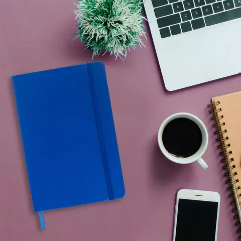 Блокнот в клетку с резинкой А5 (148x218 мм), 80 л., балакрон синий BRAUBERG "Metropolis", 111582