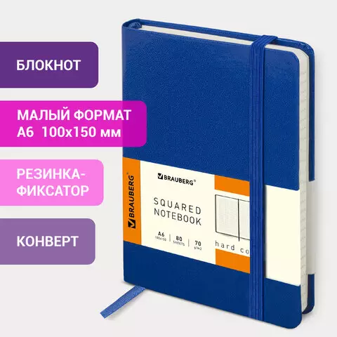 Твердая обложка стилизована под "классическую кожу". Имеет закругленные уголки, подходит для горячего тиснения и имеет резинку-фиксатор, благодаря чему не раскроется в сумке или портфеле и листы не помнутся. На внутренней стороне задней обложке есть декоративный конверт для разных мелочей в виде визиток, напоминалок или других милых и полезных мелочей. 80 листов позволят зафиксировать большой объем информации. Линовка блока в клетку (5х5 мм) дает возможность аккуратно заполнить цифровые значения, а также нанести чертежные зарисовки. Внутренний блок выполнен из офсета цвета слоновой кости плотностью 70 г/м2 и крепится к обложке с помощью книжного переплета. Дополнением является закладка-ляссе, с помощью которой при необходимости можно быстро открыть нужную страницу. Формат блокнота А6 (100х150 мм) позволит владельцу поместить его не только в кейс или сумку малых габаритов но и в карман.