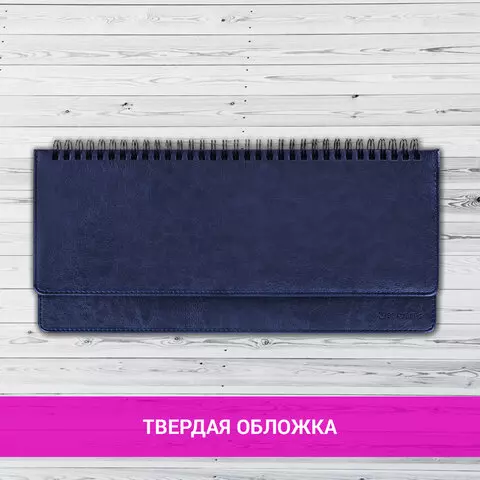 Внутренний блок содержит 60 листа офсетной бумаги кремового цвета плотностью 70 г/м2. Обложка из экокожи и твердый переплет обеспечивают долгий срок службы. Подходит для горячего тиснения. Снабжен обширным справочным материалом. Скрепление осуществляется с помощью евроспирали. Размер изделия - 305х140 мм. Выполнен в синем цвете.