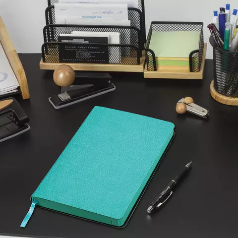 Внутренний блок включает 160 листов тонированной бумаги плотностью 70 г/м2. Каждая страничка имеет перфорированный угол. Благодаря стандартному формату А5 (138х213 мм) ежедневник удобно использовать как в офисе, так и на выездных деловых встречах. Мягкая (интегральная) обложка стилизована под фактурную кожу. Подходит для горячего тиснения. Дополнением является закладка-ляссе, с помощью которой при необходимости можно быстро открыть ежедневник на нужной странице. Помимо прочего ежедневник снабжен справочным материалом. Выполнен в ярком бирюзовом цвете.