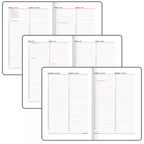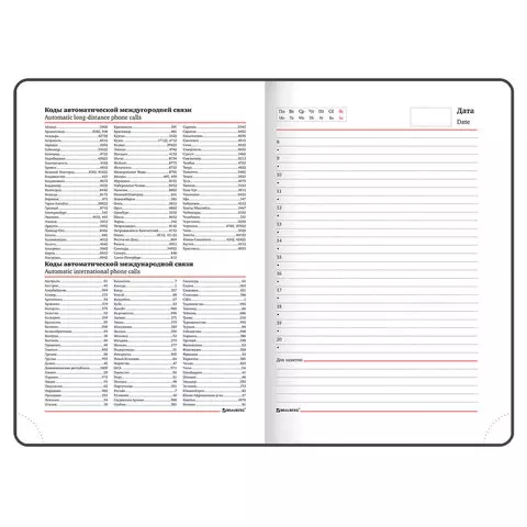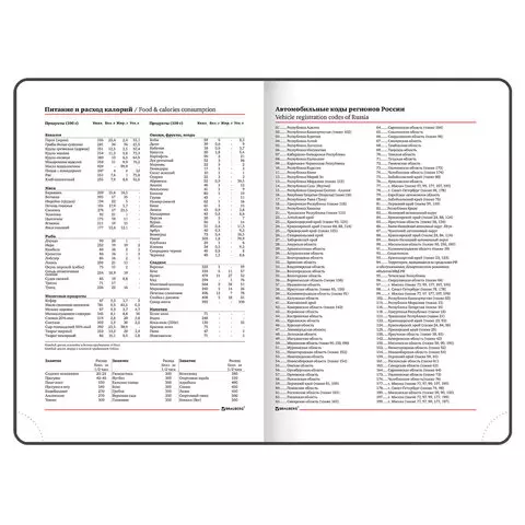 Внутренний блок включает 136 листов белой бумаги плотностью 70 г/м2. Каждая страничка имеет перфорированный угол. Благодаря стандартному формату А5 ежедневник удобно брать с собой. Твердая обложка, стилизованная под ткань, подходит для горячего тиснения. Снабжен резинкой-фиксатором, благодаря чему ежедневник не откроется в сумке или портфеле. Форзац ежедневника представлен картами мира и России. Дополнением является закладка-ляссе, с помощью которой при необходимости можно быстро открыть ежедневник на нужной странице и держатель для ручки. Помимо прочего ежедневник снабжен справочным материалом.