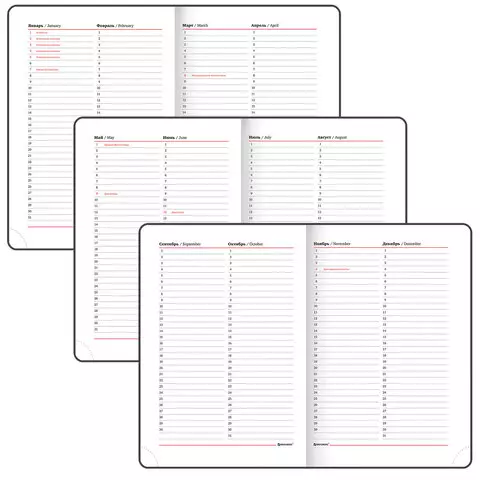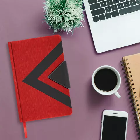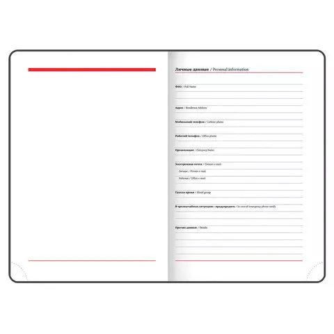 Внутренний блок включает 160 листов белой бумаги плотностью 70 г/м2. Каждая страничка имеет перфорированный угол. Благодаря стандартному формату А5 (138x213 мм) ежедневник удобно использовать как в офисе, так и на выездных деловых встречах. Твердая обложка, стилизованная под гладкую кожу, подходит для горячего тиснения. Снабжен магнитной застежкой, благодаря чему ежедневник не откроется в сумке или портфеле. Форзац ежедневника представлен картами мира и России. Дополнением является закладка-ляссе, с помощью которой при необходимости можно быстро открыть ежедневник на нужной странице. Помимо прочего ежедневник снабжен справочным материалом. Выполнен в комбинации из двух цветов - красный и черный.