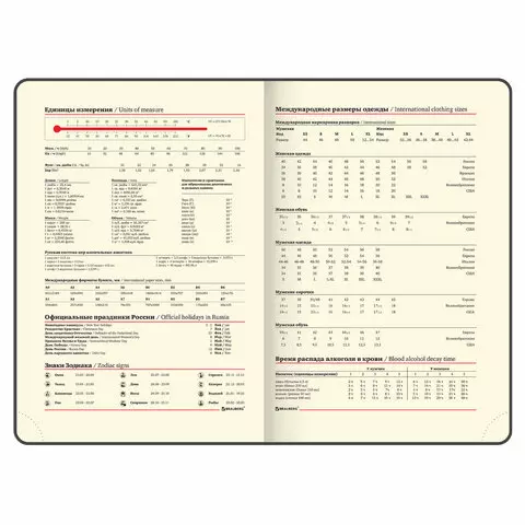 Внутренний блок включает 136 листов тонированной бумаги цвета "слоновая кость" плотностью 70 г/м2. Благодаря стандартному формату А5 ежедневник удобно использовать как в офисе, так и на выездных деловых встречах. Интегральная (мягкая) обложка с полноцветной печатью и тиснением золотой фольгой делает ежедневник неповторимым и запоминающимся. Срез ежедневника фольгирован золотой фольгой, что придает ему особый шарм. Дополнением является закладка-ляссе, с помощью которой можно быстро открыть ежедневник на нужной странице.