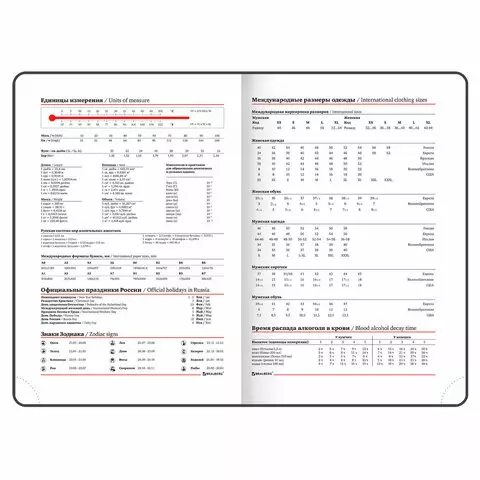 Внутренний блок включает 136 листов белой бумаги плотностью 70 г/м2. Благодаря стандартному формату А5 ежедневник удобно использовать как в офисе, так и на выездных деловых встречах. Интегральная (мягкая) обложка с полноцветной печатью делает ежедневник неповторимым и запоминающимся. Срез ежедневника прокрашен, что придает ему особый шарм. Дополнением является закладка-ляссе, с помощью которой можно быстро открыть ежедневник на нужной странице.