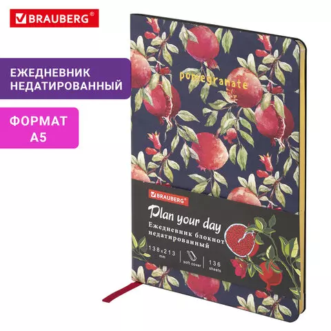 Ежедневник BRAUBERG VISTA "Pomegranate" предназначен для людей, которые ценят время и стараются каждый день проживать с максимальной пользой.