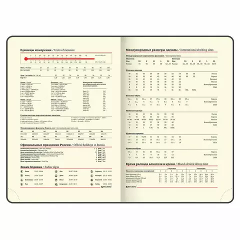 Внутренний блок включает 136 листов тонированной бумаги цвета "слоновая кость" плотностью 70 г/м2. Благодаря стандартному формату А5 ежедневник удобно использовать как в офисе, так и на выездных деловых встречах. Твердая (книжная) обложка с полноцветной печатью и тиснением золотой фольгой делает ежедневник неповторимым и запоминающимся. Срез ежедневника фольгирован золотой фольгой, что придает ему особый шарм. Дополнением является закладка-ляссе, с помощью которой можно быстро открыть ежедневник на нужной странице.