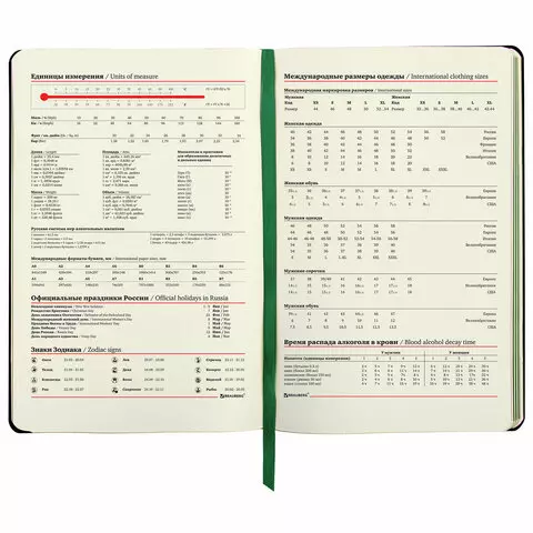 Внутренний блок включает 136 листов тонированной бумаги цвета "слоновая кость" плотностью 70 г/м2. Благодаря стандартному формату А5 ежедневник удобно использовать как в офисе, так и на выездных деловых встречах. Твердая (книжная) обложка с полноцветной печатью и тиснением золотой фольгой делает ежедневник неповторимым и запоминающимся. Срез ежедневника прокрашен, что придает ему особый шарм. Дополнением является закладка-ляссе, с помощью которой можно быстро открыть ежедневник на нужной странице.