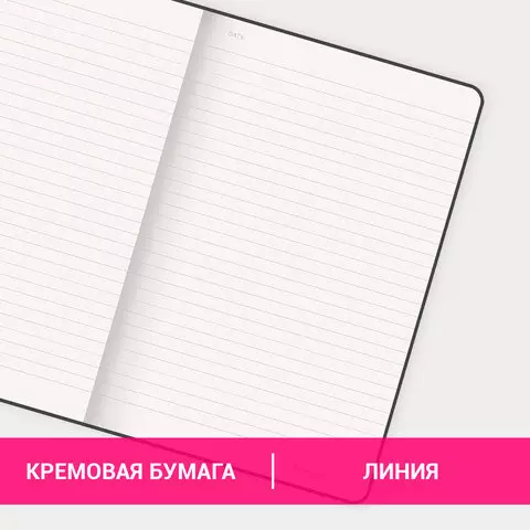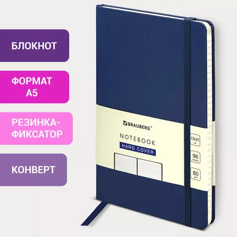 Твердая обложка стилизована под "классическую кожу". Имеет закругленные уголки, подходит для горячего тиснения и имеет резинку-фиксатор, благодаря чему не раскроется в сумке или портфеле и листы не помнутся. На внутренней стороне задней обложки есть декоративный конверт для разных мелочей в виде визиток, напоминалок или других милых и полезных мелочей. 96 листов позволят зафиксировать большой объем информации. Линовка блока в линию. Расстояние между линовками составляет 6 мм. Внутренний блок выполнен из офсета цвета слоновой кости плотностью 80 г/м2 и крепится к обложке с помощью книжного переплета. Дополнением является закладка-ляссе, с помощью которой при необходимости можно быстро открыть нужную страницу. Формат блокнота А5 (130х210 мм) позволит владельцу поместить его в кейс или сумку малых габаритов.