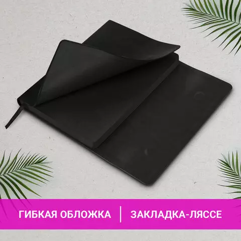 Внутренний блок включает 160 листов белой бумаги плотностью 70 г/м2. Каждая страничка имеет перфорированный угол. Благодаря стандартному формату А5 ежедневник удобно использовать как в офисе, так и на выездных деловых встречах. Интегральная (мягкая) обложка, выполненная в классическом черном цвете и стилизованная под гладкую кожу, фиксируется магнитным клапаном, поэтому ежедневник не откроется в сумке или портфеле и страницы не помнутся. Подходит для горячего тиснения. Дополнением является закладка-ляссе, с помощью которой при необходимости можно быстро открыть ежедневник на нужной странице. Помимо прочего ежедневник снабжен обширным справочным материалом.