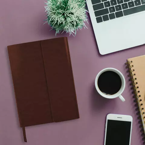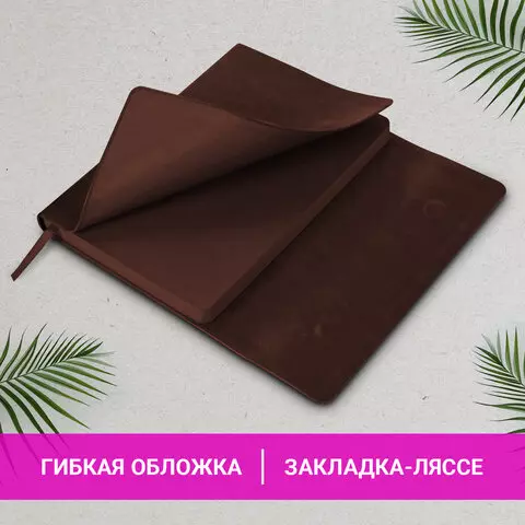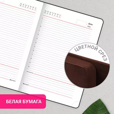 Внутренний блок включает 160 листов белой бумаги плотностью 70 г/м2. Каждая страничка имеет перфорированный угол. Благодаря стандартному формату А5 ежедневник удобно использовать как в офисе, так и на выездных деловых встречах. Интегральная (мягкая) обложка, выполненная в классическом коричневом цвете и стилизованная под гладкую кожу, фиксируется магнитным клапаном, поэтому ежедневник не откроется в сумке или портфеле и страницы не помнутся. Подходит для горячего тиснения. Дополнением является закладка-ляссе, с помощью которой при необходимости можно быстро открыть ежедневник на нужной странице. Помимо прочего ежедневник снабжен обширным справочным материалом.