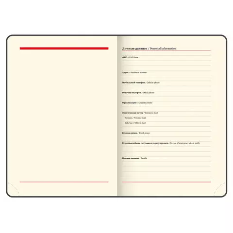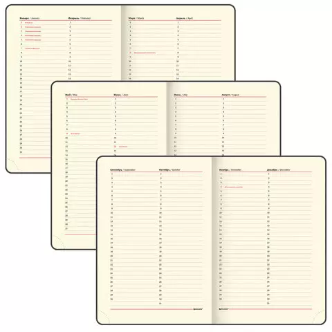 Внутренний блок включает 160 листов тонированной бумаги плотностью 70 г/м2. Каждая страничка имеет перфорированный угол. Благодаря большому формату А4 (210х297 мм) ежедневник удобно использовать как в офисе, так и на выездных деловых встречах. Твердая обложка стилизована под гладкую кожу. Подходит для горячего тиснения. Снабжен резинкой-фиксатором, благодаря чему ежедневник не откроется в сумочке или портфеле и листы не помнутся. Дополнением является закладка-ляссе, с помощью которой при необходимости можно быстро открыть ежедневник на нужной странице. Помимо прочего ежедневник снабжен справочным материалом.