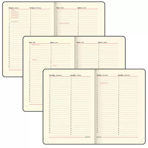 Внутренний блок включает 160 листов тонированной бумаги плотностью 70 г/м2. Каждая страничка имеет перфорированный угол. Благодаря стандартному формату А5 (138х213 мм) ежедневник удобно использовать как в офисе, так и на выездных деловых встречах. Твердая обложка стилизована под фактурную кожу. Подходит для горячего тиснения. Дополнением является закладка-ляссе, с помощью которой при необходимости можно быстро открыть ежедневник на нужной странице.