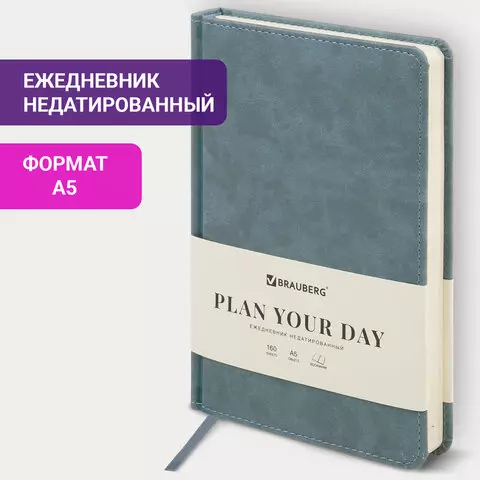 Ежедневник недатированный А5 138х213 мм BRAUBERG "Status", под кожу, 160 л., серо-голубой, 113365