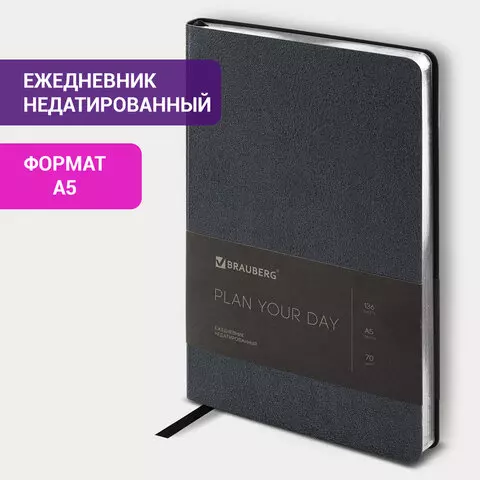 Недатированный ежедневник BRAUBERG "Metallic" с оригинальной обложкой из искусственной кожи предназначен для энергичных людей, любящих нестандартные подходы к решению поставленных задач.