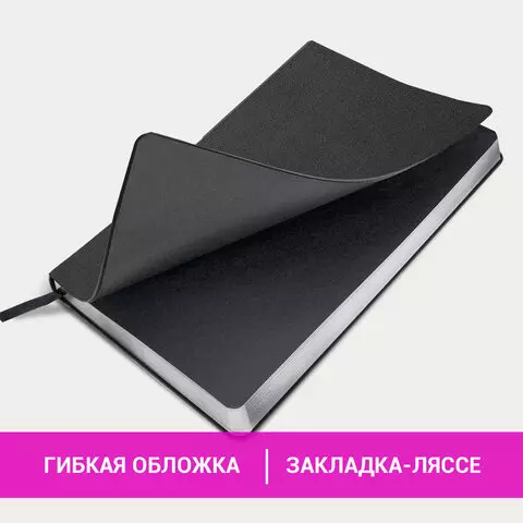 Ежедневник недатированный А5 138х213 мм BRAUBERG "Metallic", под кожу, 136 л., гибкий, черный, 113374
