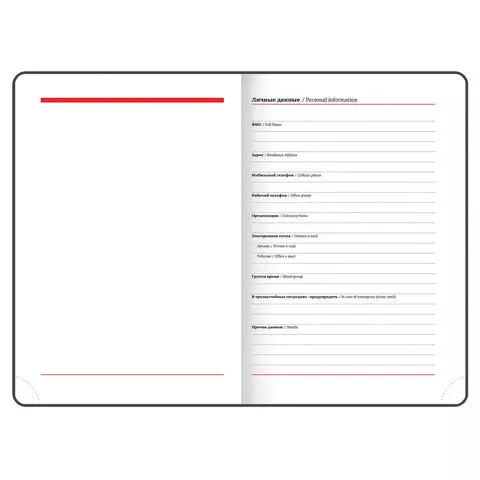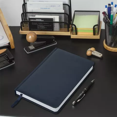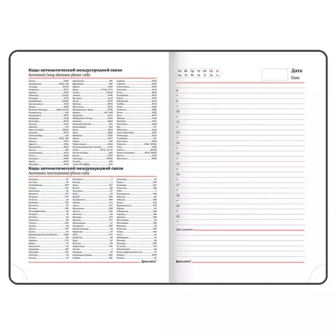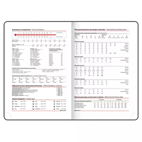 Внутренний блок включает 160 листов белой бумаги плотностью 70 г/м2. Каждая страничка имеет перфорированный угол. Благодаря стандартному формату А5 ежедневник удобно использовать как в офисе, так и на выездных деловых встречах. Твердая обложка, стилизованная под гладкую кожу., подходит только для тиснения фольгой. Дополнением является закладка-ляссе, с помощью которой при необходимости можно быстро открыть ежедневник на нужной странице. Помимо прочего ежедневник снабжен обширным справочным материалом.