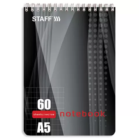 Блокнот формата А5 на евроспирали содержит 60 листов с линовкой в клетку, что позволяет зафиксировать большой объем нужной информации. Имеет жесткую подложку, позволяющую делать записи на весу, и верхнее расположение переплета. Обложка выполнена из мелованного картона плотностью 200 г/м2. Внутренний блок состоит из белой офсетной бумаги плотностью 60 г/м2.