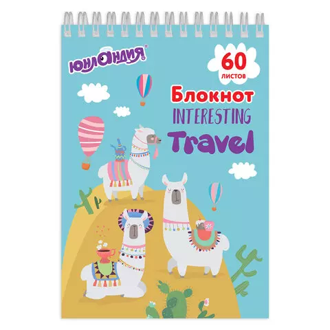Блокнот А5 (146х205 мм), 60 л., гребень, картон, клетка, ЮНЛАНДИЯ, "Веселое путешествие", 129814