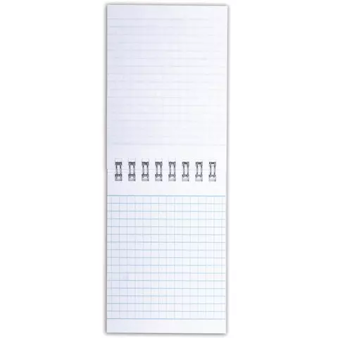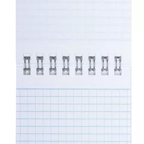 Блокнот формата А7 на евроспирали содержит 40 листов с линовкой в клетку. Имеет верхнее расположение переплета. Обложка выполнена из мелованного картона плотностью 200 г/м2. Внутренний блок состоит из белой офсетной бумаги плотностью 60 г/м2.