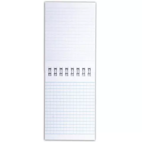 Блокнот формата А74 на евроспирали содержит 40 листов с линовкой в клетку. Имеет верхнее расположение переплета. Обложка выполнена из мелованного картона плотностью 200 г/м2. Внутренний блок состоит из белой офсетной бумаги плотностью 60 г/м2.
