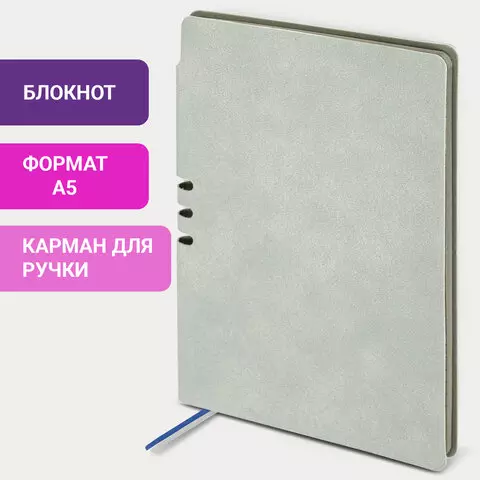 Блокнот А5 (140х200 мм), BRAUBERG "NEBRASKA", под кожу, 80 л., линия, серый, 113410
