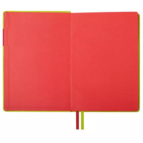 Внутренний блок включает 136 листов белой бумаги плотностью 70 г/м2. Благодаря стандартному формату А5 ежедневник удобно использовать как в офисе, так и на выездных деловых встречах. Интегральная обложка стилизована под гладкую кожу и прошита по периметру. Подходит для горячего тиснения. На внутренней стороне задней обложки есть декоративный конверт для разных мелочей в виде визиток, напоминалок или других милых и полезных мелочей. Срез и форзац ежедневника окрашены в контрастный цвет с обложкой, что придает ему особый шарм. Дополнением являются две закладки-ляссе, с помощью которых можно быстро открыть или зафиксировать ежедневник на нужной странице, а также держатель для ручки на контрасте с обложкой.