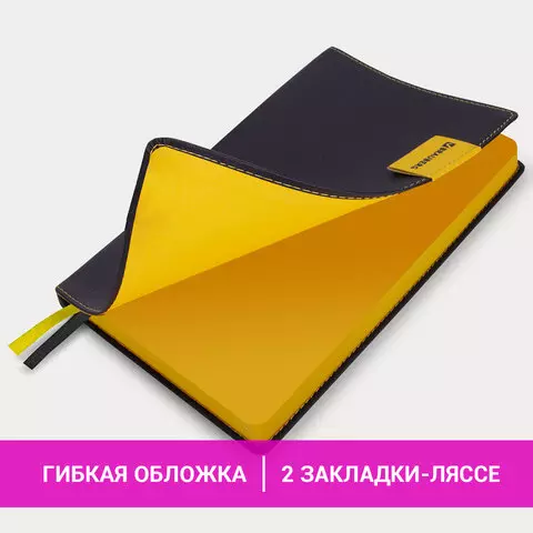 Внутренний блок включает 136 листов белой бумаги плотностью 70 г/м2. Благодаря стандартному формату А5 ежедневник удобно использовать как в офисе, так и на выездных деловых встречах. Интегральная обложка стилизована под гладкую кожу и прошита по периметру. Подходит для горячего тиснения. На внутренней стороне задней обложки есть декоративный конверт для разных мелочей в виде визиток, напоминалок или других милых и полезных мелочей. Срез и форзац ежедневника окрашены в контрастный цвет с обложкой, что придает ему особый шарм. Дополнением являются две закладки-ляссе, с помощью которых можно быстро открыть или зафиксировать ежедневник на нужной странице, а также держатель для ручки на контрасте с обложкой.