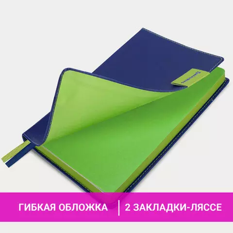 Внутренний блок включает 136 листов белой бумаги плотностью 70 г/м2. Благодаря стандартному формату А5 ежедневник удобно использовать как в офисе, так и на выездных деловых встречах. Интегральная обложка стилизована под гладкую кожу и прошита по периметру. Подходит для горячего тиснения. На внутренней стороне задней обложки есть декоративный конверт для разных мелочей в виде визиток, напоминалок или других милых и полезных мелочей. Срез и форзац ежедневника окрашены в контрастный цвет с обложкой, что придает ему особый шарм. Дополнением являются две закладки-ляссе, с помощью которых можно быстро открыть или зафиксировать ежедневник на нужной странице, а также держатель для ручки на контрасте с обложкой.