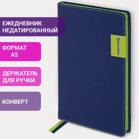 Ежедневник недатированный А5 (138х213 мм), BRAUBERG "AIM", под кожу, 136 л., темно-синий, 113423