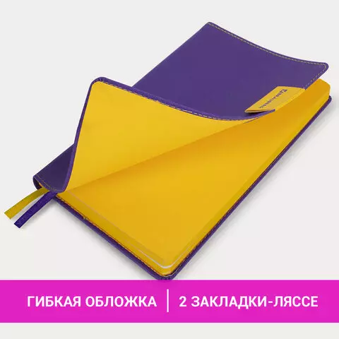 Внутренний блок включает 136 листов белой бумаги плотностью 70 г/м2. Благодаря стандартному формату А5 ежедневник удобно использовать как в офисе, так и на выездных деловых встречах. Интегральная обложка стилизована под гладкую кожу и прошита по периметру. Подходит для горячего тиснения. На внутренней стороне задней обложки есть декоративный конверт для разных мелочей в виде визиток, напоминалок или других милых и полезных мелочей. Срез и форзац ежедневника окрашены в контрастный цвет с обложкой, что придает ему особый шарм. Дополнением являются две закладки-ляссе, с помощью которых можно быстро открыть или зафиксировать ежедневник на нужной странице, а также держатель для ручки на контрасте с обложкой.