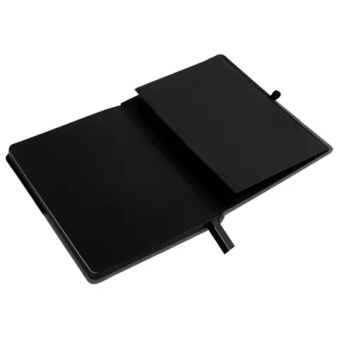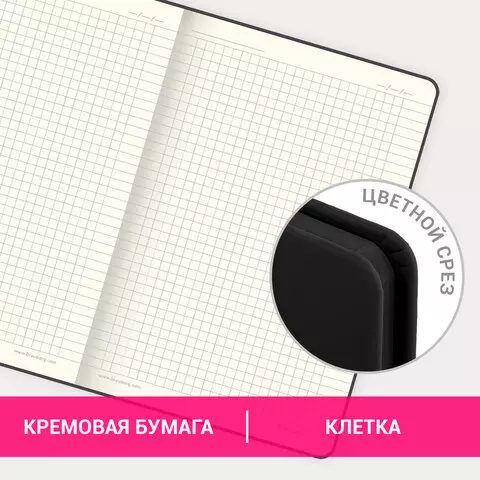 Твердая обложка с использованием комбинации материалов: с фактурой "Soft Touch" и под ткань. Имеет закругленные уголки, подходит для горячего тиснения и имеет резинку-фиксатор, благодаря чему не раскроется в сумке или портфеле и листы не помнутся. На внутренней стороне задней обложки есть декоративный конверт для разных мелочей в виде визиток, напоминалок и прочего. 80 листов позволят зафиксировать большой объем информации. Линовка блока в клетку (5х5 мм) дает возможность аккуратно заполнить цифровые значения, а также нанести чертежные зарисовки. Внутренний блок выполнен из офсета цвета слоновой кости плотностью 70 г/м2 и крепится к обложке с помощью книжного переплета. Дополнением является закладка-ляссе, с помощью которой при необходимости можно быстро открыть нужную страницу. Формат блокнота А5 (148х218 мм) позволит владельцу поместить его в кейс или сумку малых габаритов.