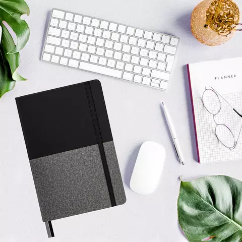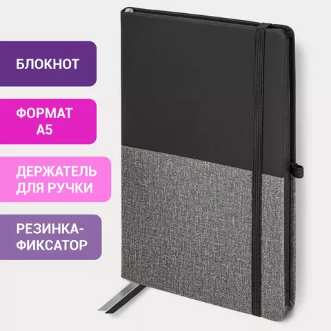 Блокнот А5 (148х218 мм), BRAUBERG "DUO", под кожу с резинкой, 80 л., клетка, черный/серый, 113433
