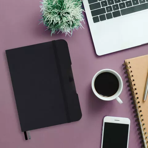 Твердая обложка стилизована под "гладкую кожу". Специальное покрытие с повышенными тактильными свойствами придает обложке мягкий, бархатистый эффект. Имеет закругленные уголки, подходит для горячего тиснения и имеет резинку-фиксатор, благодаря чему не раскроется в сумке или портфеле и листы не помнутся. 80 листов позволят зафиксировать большой объем информации. Линовка блока в клетку (5х5 мм) дает возможность аккуратно заполнить цифровые значения, а также нанести чертежные зарисовки. Внутренний блок выполнен из офсета цвета слоновой кости плотностью 70 г/м2 и крепится к обложке с помощью книжного переплета. Дополнением являются две закладки-ляссе, с помощью которых при необходимости можно быстро открыть или зафиксировать нужную страницу, а также держатель для ручки. Формат блокнота А5 (162х218 мм) позволит владельцу поместить его в кейс или сумку малых габаритов.