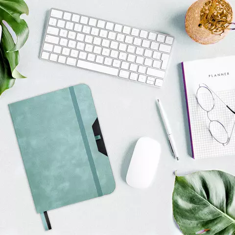 Твердая обложка стилизована под "гладкую кожу". Специальное покрытие с повышенными тактильными свойствами придает обложке мягкий, бархатистый эффект. Имеет закругленные уголки, подходит для горячего тиснения и имеет резинку-фиксатор, благодаря чему не раскроется в сумке или портфеле и листы не помнутся. 80 листов позволят зафиксировать большой объем информации. Линовка блока в клетку (5х5 мм) дает возможность аккуратно заполнить цифровые значения, а также нанести чертежные зарисовки. Внутренний блок выполнен из офсета цвета слоновой кости плотностью 70 г/м2 и крепится к обложке с помощью книжного переплета. Дополнением являются две закладки-ляссе, с помощью которых при необходимости можно быстро открыть или зафиксировать нужную страницу, а также держатель для ручки. Формат блокнота А5 (162х218 мм) позволит владельцу поместить его в кейс или сумку малых габаритов.