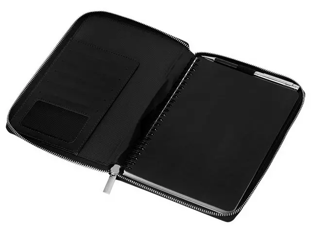 Бизнес блокнот Fabrizio состоит из пенала на молнии выполненного из искусственной кожи, и сменной тетради на 80 листов на кольцах с перфорированными линованными листами белого цвета. Блокнот снабжен 5 отделениями для карт и RFID защитой, которая охраняет вашу личную и финансовую информацию от мошенников. В комплекте идет ручка, подходящая блокноту по стилю и цвету.