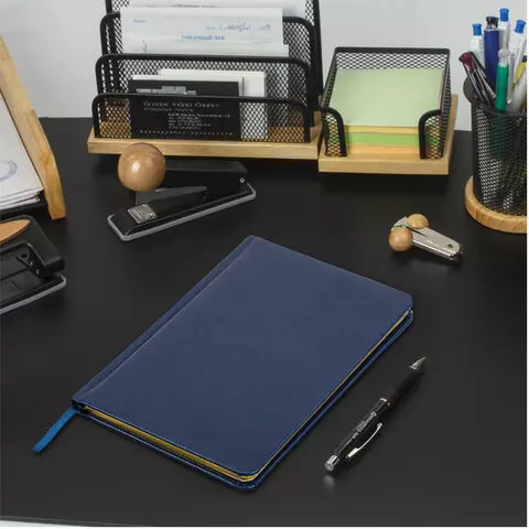 Внутренний блок включает 160 листов тонированной бумаги плотностью 70 г/м2. Каждая страничка имеет перфорированный угол. Благодаря большому формату А4 (210х297 мм) ежедневник удобно использовать как в офисе, так и на выездных деловых встречах.